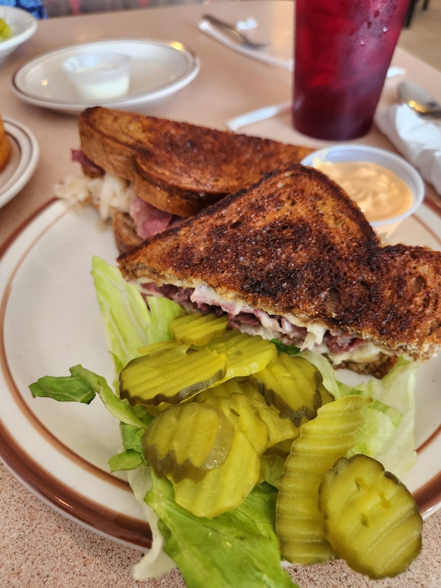Stopped here on our way to Dubuque, IA. Donna was fantastic, and we asked for suggestions, which she shared her favs. I got the breaded chicken n fries & and my husband had a bacon cheeseburger n fries. Our friends had country fried steak, ham steak, n country fries. Dessert was peppermint ice cream, rainbow sherbet, and tapioca pudding with whipped cream n cinnamon sugar. Highly recommend it!! Breakfast all day. Picture of our bill.